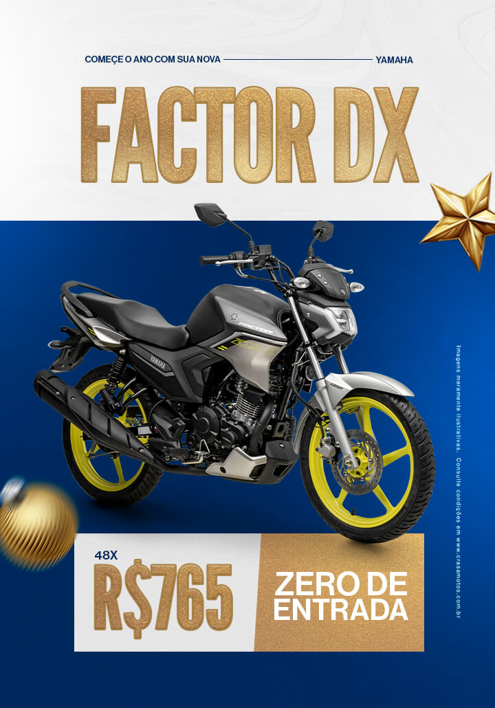 A nova FACTOR DX está muito mais sofisticada com farol completamente novo de LED e exclusiva luz de posição, novas carenagens do tanque agora pintadas e novo spoiler de motor oferecido apenas em motocicletas esportivas de maiores cilindradas. Na versão DX as rodas coloridas e motor preto garantem um visual ainda mais diferenciado. A nova tampa do tanque tipo aviador além de ser estilosa é muito mais prática na hora de abastecer. O pneu traseiro está mais largo, trazendo a robustez que você precisa para encarar o dia a dia com muito mais estilo.