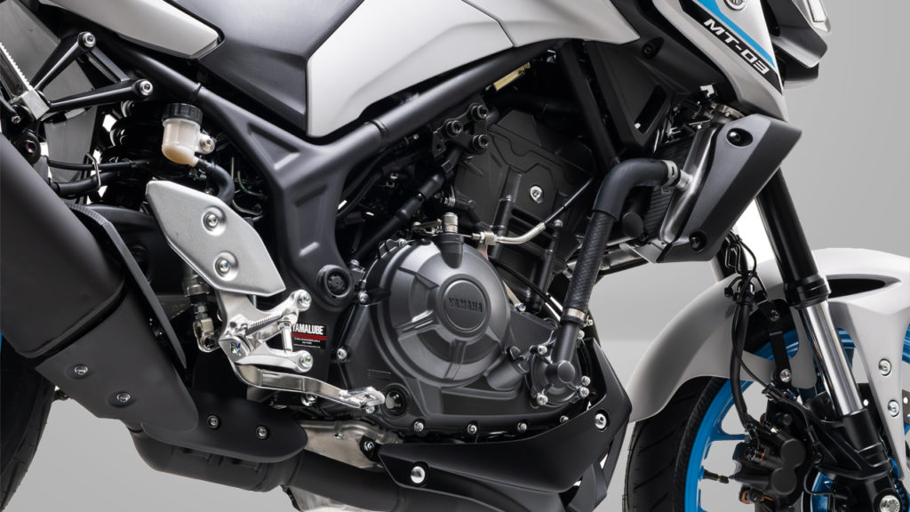 Sua ótima posição de pilotagem, complementada pelas 7 regulagens de pré-carga na mola e a nova suspensão dianteira invertida, fazem da MT-03 a mais equilibrada street fighter para uso diário com performance e conforto.