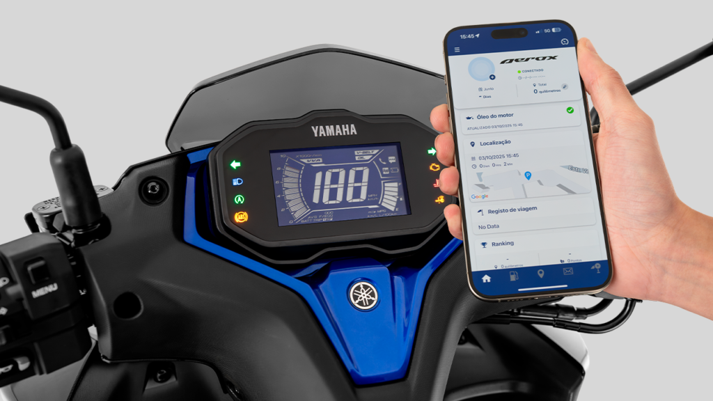 Pensada para ampliar sua experiência urbana, a Aerox ABS Connected se integra ao seu dia a dia com conectividade Bluetooth via Y-CONNECT. Pelo app, o piloto acompanha o consumo de combustível médio, o histórico de viagens (com possibilidade de compartilhamento em redes sociais) e o cronograma de manutenção. O aplicativo também mostra a última localização de pareamento da motocicleta e um ranking ECO, que indica o quão econômica e eficiente está a pilotagem comparada a outros pilotos. Além disso, facilita a rotina com alertas de manutenção e notificações do smartphone, direto no painel 100% digital em estilo “Blackout”. Nele, você também encontra indicadores de ABS, Stop & Start, SmartKey, temperatura do motor, VVA, combustível, relógio e a função ECO, que ajuda a conduzir de forma mais econômica.