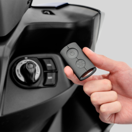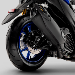 A scooter esportiva da Yamaha também tem Smart Key (para ligar o modelo por aproximação), acompanhada do Sistema Answer Back, uma tecnologia que permite encontrar o veículo por meio de um toque, no botão da chave de presença: quando acionado, as setas piscam e um sinal sonoro é emitido. E para maior comodidade e praticidade para o motociclista, a nova Aerox ABS Connected vem equipada com tomada USB Tipo-C, e porta-objetos dianteiro com tampa e espaço sob o banco suficiente para um capacete fechado.